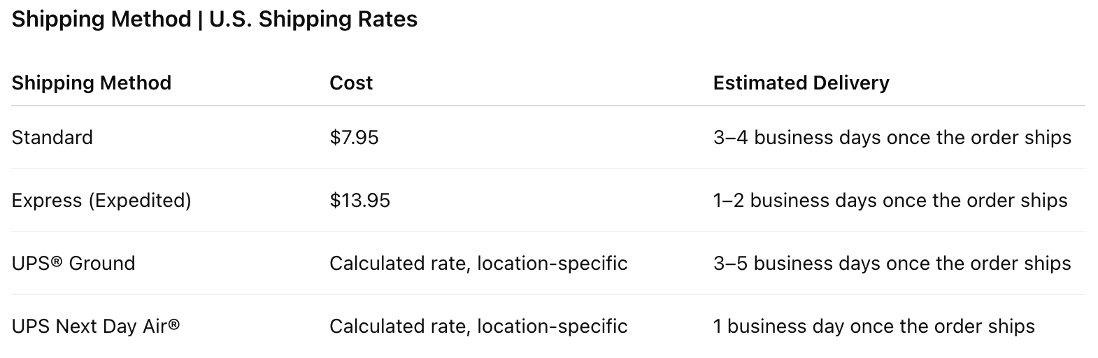 Orders are processed within 1-3 business days. Once your order is processed, it will be shipped out with the shipping method selected at checkout.